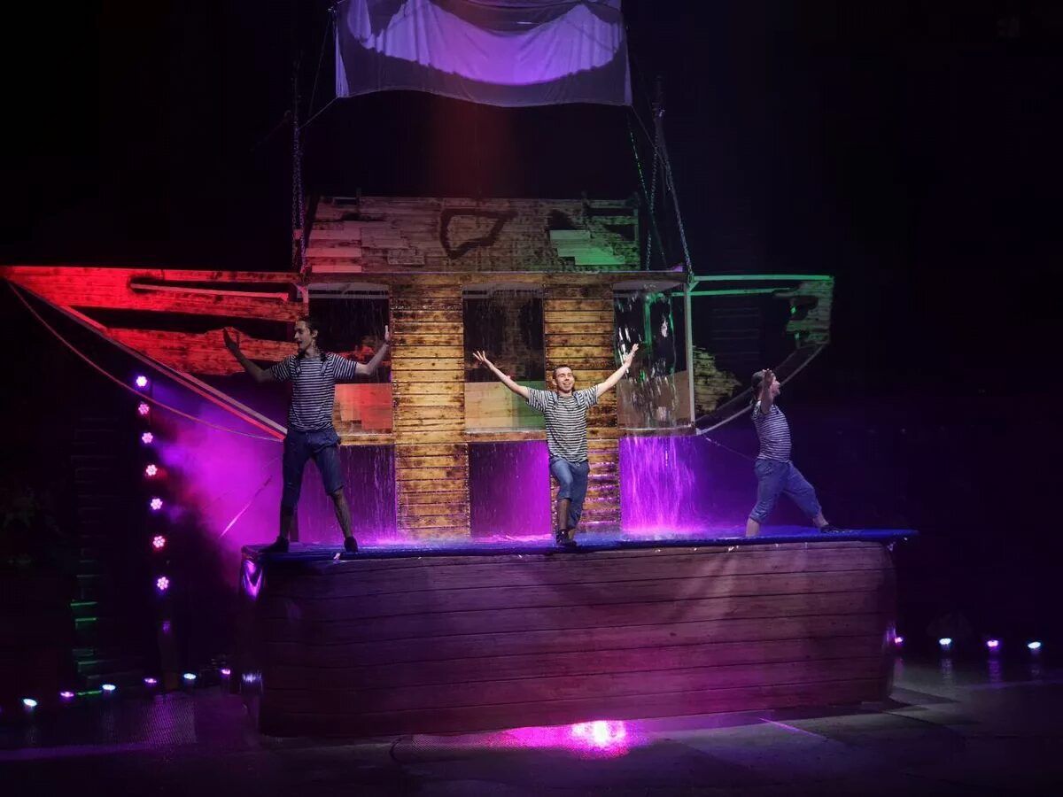 Tamaşanın təşkilatçısı sirk sənəti sahəsində bir sıra nüfuzlu mükafatların laureatı Allahverdi İsrafilovdur. Su şousu proqramını Serj Bondarçuk edir. Proqrama 600 fəvvarə, 100 ton su, işıqlandırma avadanlığı və əlliyə qədər işçi daxildir. Tamaşada heyvanlar da iştirak edirdi: ayılar, tutuquşular, meymunlar və itlər.
